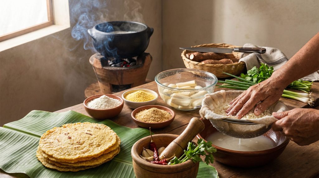 Este artigo explora técnicas e saberes tradicionais brasileiros focando em modos de preparo transmissíveis: panela de barro, defumações, uso do pilão, preparo de farinhas e beiju, além de organização de mise en place e aproveitamento integral. O objetivo é oferecer instruções práticas e contextualizar por que essas técnicas persistem em comunidades e feiras, mostrando exemplos reais e passos detalhados para aplicar em casa. O leitor aprenderá processos passo a passo, cuidados essenciais e raciocínio por trás de escolhas como cura de panela, tempo de defumação e hidratação da mandioca.
