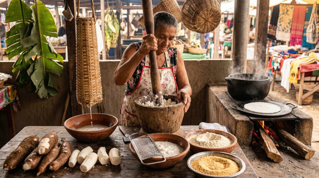 Este artigo explora, na prática, técnicas tradicionais de preparo da mandioca e saberes culinários brasileiros: do uso do pilão ao cozimento em panela de barro, passando pela produção de farinhas, beiju e aproveitamento integral. Você encontrará descrições técnicas, passos detalhados, exemplos regionais e orientações para organização de mise en place em feiras e cozinhas domésticas. O objetivo é proporcionar um repertório útil para reproduzir processos tradicionais com segurança e respeito às práticas locais, entendendo também por que cada etapa altera sabor, textura e conservação.